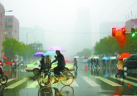 昨日,我省部分地区还出现了雷暴天气,受此影响,河南大部普遍出现了小到中雨,局部大雨。根据中央气象台昨晚7时的雨量统计,降水量最大的前十个城市中,有9个是河南的,其中周口的降水量达到26毫米,全国最大。