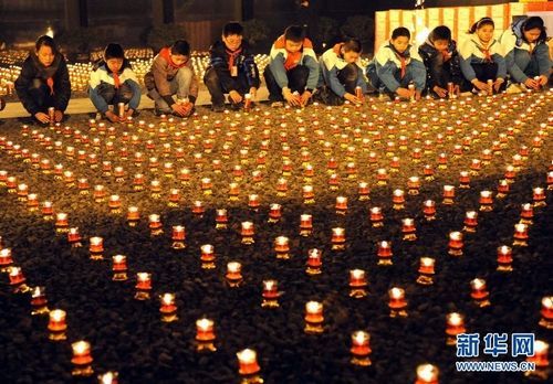 12月12日,南京小学生代表为大屠杀遇难同胞秉烛守灵