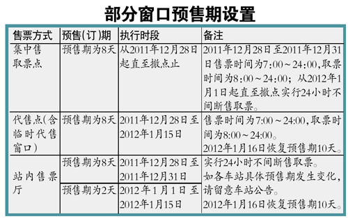 武广高铁、广深港高铁广深段、广珠城际铁路、海南东环高铁、广深线动车组从12月28日起预售期调整为8天,2012年2月10日恢复为10天。