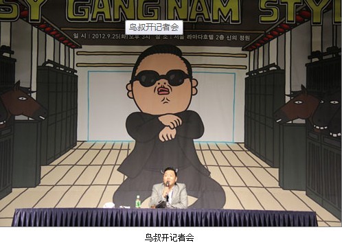 在到达韩国的当天下午,“鸟叔”在位于江南的RAMADA酒店召开记者招待会,介绍了自己美国之行以及未来的计划。他表示对自己获得韩国第一、亚洲第一的称号感到荣幸,已无任何遗憾。他还承诺如果《江南style》登上本周《公告牌》排行榜冠军,便会在最多市民能观看的地方设舞台,脱着上衣演唱《江南Style》。