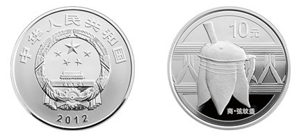中国人民银行定于2012年8月31日发行中国青铜器金银纪念币(第1组)一套。该套纪念币共5枚,其中金币2枚,银币3枚,均为中华人民共和国法定货币。1盎司圆形银质纪念币背面图案为商代弦纹盉,衬以该器物弦纹样等装饰组合设计,并刊“商·弦纹盉”字样及面额。1盎司圆形银质纪念币为精制币,含纯银1盎司,直径40毫米,面额10元,成色99.9%,最大发行量80000枚。 盉作为容器不见于先秦典籍,而弦纹盉最早出现于商代早期,盛行于商晚至西周,延用至东汉,而令人意想不到的是,今日使用的茶壶便是由盉发展而来的。虽然今日之茶壶的外观造型及材料已有了多方面的改变,但功能和使用方式还是类似于弦纹盉,代表着优雅、品位的茶壶,鼻祖却是币中有点古板而简约的弦纹盉,说明了智慧的人类具备着超强触类旁通的创造能力。 (供稿:北京银协集币服务中心)