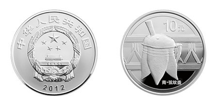 这枚银币的图案盉为古代盛酒器,是古人调和酒、水的器具,用水来冲兑酒味的浓淡。中国人民银行定于2012年8月31日发行中国青铜器金银纪念币(第1组)一套。这套纪念币共5枚,其中金币2枚,银币3枚,均为中华人民共和国法定货币。1盎司银币成色99.9%,直径40毫米,重量1盎司,面额10元,发行量80000枚,纪念币正面图案均为中华人民共和国国徽,并刊国名、年号。背面图案为商代弦纹盉,衬以该器物弦纹样等装饰组合设计,并刊“商·弦纹盉”字样及面额。中国古代青铜器从商代晚期开始,造型呈现出敦厚凝重的特点,其装饰繁复,图纹威严神秘,西周大致秉承商代旧制而略有变化。随着王权衰落,礼崩乐坏,青铜礼器中逐渐透出一些令人轻松的气息,旧有的神秘、庄重与沉闷渐渐隐去,而新的有创意的造型和纹饰,一步步走向百姓生活。此弦纹盉形状较原始,其设计和铸造水平均不高,具有商代早期青铜器的特征。整体观之,银币背面呈现出一派古朴自然之气韵,没有做作的浮华,也没有刻意为之的素朴,其贵在自然,却仍能瞥见银币制作中的用心良苦。值得大家收藏。 (供稿:北京银协集币服务中心)