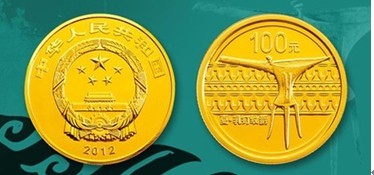 在这漫长的岁月中,华夏文明被全人类称颂,青铜器就是其中之一。“夏代乳钉纹爵”距今已有3000多年的历史了,是迄今发现最早的青铜容器,它不但见证着中国文化悠长的历史,更是酒文化开端的见证者。2012年8月31日,中国人民银行发行中国青铜器金银纪念币(第1组)一套。这套纪念币共5枚,其中金币2枚,银币3枚,其中1/4盎司圆形金质纪念币背面图案就是夏代乳钉纹爵。 让人顿感赏心悦目的是:杯口呈椭圆状,与杯腹的比例恰到好处,圆腹纤腰,细长的尾,旁有玉手,三足尖而高,宛如婀娜多姿的少女,处处散发着先民们的智慧,尽显华夏文化的源远流长。将盛着美酒的酒杯刻画在具有皇者风范的金币上,将这枚金币的高贵、雍容的气质尽显出来。