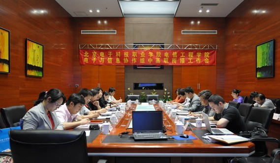 中国教育品牌网讯 近日,北京电子科技职业学院的电信工程学院电子与信息协作组中高职衔接工作会在蟹岛会议中心举行。此次工作会主要就北京电子科技职业学院电信工程学院与北京市电气工程学校在电子信息技术专业开展的3+2中高职衔接合作中的人才培养方案制定进行了讨论与交流。北京教育科学研究院主任柳燕君、北京市电气工程学校校长刘杰、书记刘淑珍以及各相关系主任参加了工作会,电子与信息协作组合作学校北京市经济管理学校、北京国际职业教育学校也派代表参加了此次会议。参加工作会的学校领导有么居标校长助理、招生就业处副处长陶云明、教务处副处长陈洪华、电信工程学院院长周国烛、党委书记何兵等。会议由何兵书记主持。