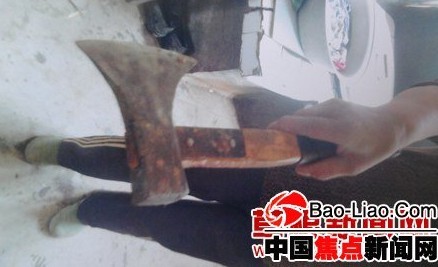 姜贵武被打以后(姜家手机拍摄)姜贵武的妻子杨素霞被打后(姜家手机拍摄)被姜家抢下来的斧头(姜家手机拍摄)