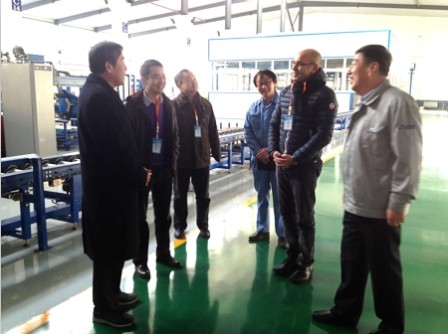 环日集团董事长潘书昌(左一)索尔特装总经理秦祥(右一)陪同外商参观LNG生产线