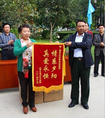 10月2日,首届大学生公益创意颁奖盛典中被授予“大学生三创基地”的三家挂牌企业欢聚在北京通州区光荣院,和这里的老人共度重阳节。同时,这三家企业还分别为这里的老人送上了自己的爱心。