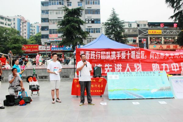 青春践行团队是一支以“寻访先进人物 助力中国梦想”为主题的社会实践团队。放假以来 ,他们先后在市环保局、孙家湾村、郧县卧龙岗村等7个单位开展了先进人物寻访活动,团队负责人陈志新说:“本次社会实践的目的是为了挖掘在南水北调工程背后涌现出来的先进人物和感人事例,并通过对其进行宣传带动更多的人去学习、领悟、践行先进人物的精神,加深群众对中国梦的理解。