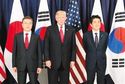 第72届联合国大会渐入尾声,美日韩三国首脑会晤却在此时成为本次联大期间另一看点。美国总统特朗普、日本首相安倍晋三和韩国总统文在寅将于今日共进午餐并举行三国首脑会晤,这是继今年7月德国汉堡G20峰会后美日韩领导人再次聚首。