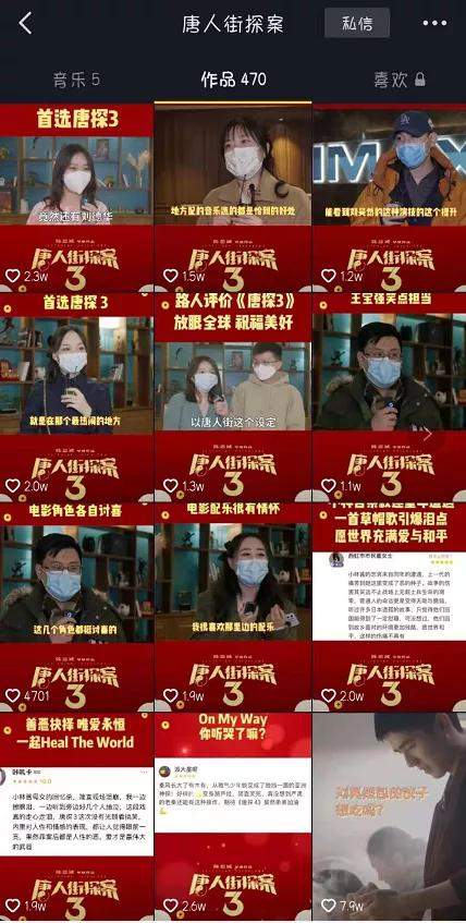 唐探的片方,曾一度试图挽救崩掉的口碑,不停在自己的官方账号上面狂刷好评视频,数量高达22个。这一波操作下来,暂且不论好不好用,起码说明一个问题,唐探的片方明白一个道理,好口碑的电影才有好票房。